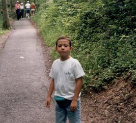 ![]() Camden 1996, hiking on a trail in the Tennessee Mountains. |