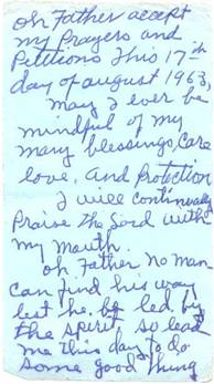 Oh Father accept my prayers and petitions this 17th day of August 1963. May I ever be mindful of my many blessings, care, love and protection.