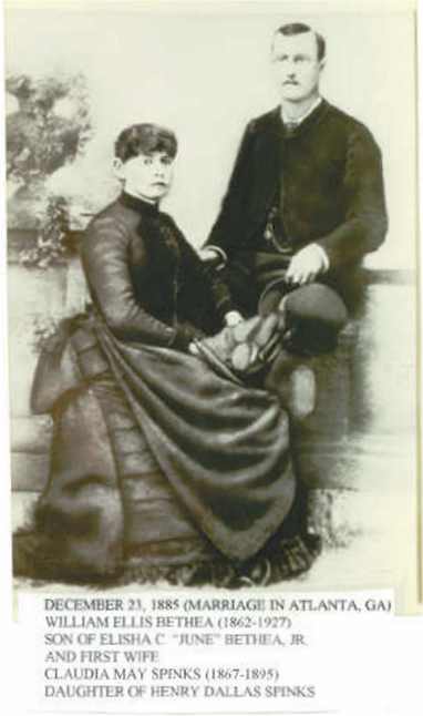 William Ellis Bethea(7) b. 3-29-1862 Son of Elisha Cochrane Bethea Jr. and Sallie Ellis m(1) Clandia Spinks
